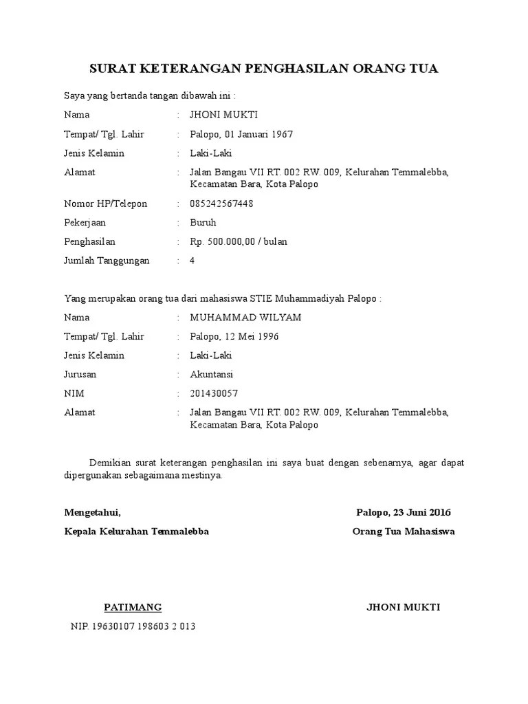 Syarat Membuat Surat Keterangan Penghasilan Orang Tua Di Kelurahan : 5 Contoh Surat Keterangan Penghasilan Dan Cara Membuatnya / Maksud dari anggota keluarga yang menjadi tanggungan sepenuhnya adalah anggota keluarga yang tidak mempunyai penghasilan dan seluruh biaya hidupnya ditanggung oleh wajib pajak.